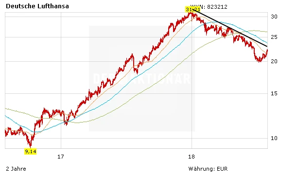 Die Aktie der Lufthansa ist derzeit eher nicht für Anleger mit schwachen Nerven geeignet. Wer Mut hat, kann auf dnm aktuellen Niveua zugreifen (Stopp: 16,50 Euro). Das Chartbild hat sich zuletzt wieder deutlich aufgehellt. Die Aktie hätte zunächst Luft nach oben bis etwa 24 Euro. Und auch fundamental betrachtet besteht angesichts eines KGV von 5 noch Aufwärtspotenzial.