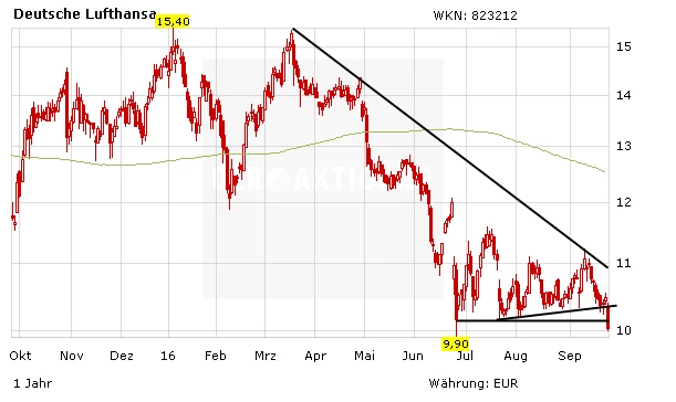 Durch die Übernahem von Air-Berlin-Flugzeugen dürfte die Deutsche Lufthansa auch kaum attraktiver werden. Der DAX-Konzern hat weiterhin mit dem starken Wettbewerb durch Billigflieger zu kämpfen. Zudem sieht der Chart grauenhaft aus. Anleger sollten hier tunlichst nicht ins fallende Messer greifen.