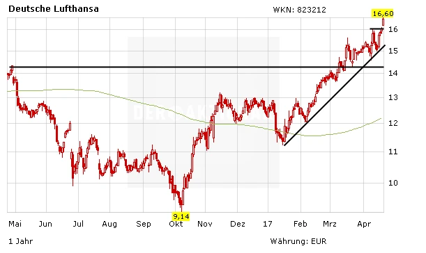 Die guten Konjunkturdaten gepaart mit eher schwächer tendierenden Ölpreisen hatten den Luftfahrtaktien zuletzt Rückenwind verliehen. Darüber hinaus ist der Luftfahrtsektor nach der eher mauen Performance vieler Airline-Papiere im Jahr 2016 einer der letzten Sektoren, in denen Investoren noch günstig bewertete Aktien finden können. So beläuft sich etwa das KGV der Lufthansa für das laufende Jahr auf lediglich 6. Bei Ryanair beträgt diese Kennzahl 12, was angesichts der stabilen Wachstumsraten ebenfalls günstig ist.