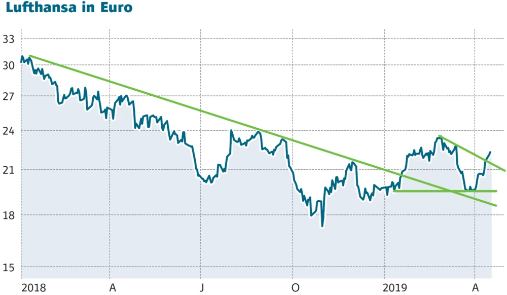 Durch den gestrigen Turnaround hat sich das zuletzt wieder aufgehellte Chartbild nicht weiter eingetrübt. Anleger können daher bei der Kranich-Airline weiterhin zugreifen. Der Stopp sollte bei 16,80 Euro belassen werden.