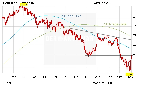 Die Lufthansa steht vor einem schwierigen Jahr 2019. Erwartet werden weiter steigende Kerosinpreise, die mit höheren Ticketpreisen ausgeglichen werden sollen. Die Lufthansa-Aktie könnte vor diesem Hintergrund auf absehbare Zeit zwischen 18 und 23 Euro schwanken. Eine Trendumkehr zum Besseren dürfte dauern. Lediglich Trading-Chancen wie zuletzt sind denkbar. Interessierte Anleger mit langem Anlagehorizont sollten also noch abwarten.