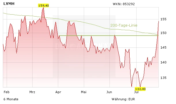 So etwas hat es schon lange nicht mehr gegeben: Die Aktie von LVMH ist nach Bekanntgabe der Quartalszahlen zeitweise um über sieben Prozent ins Plus geschossen. Das begeistert nicht nur die Anleger, sondern ist auch noch ein Hoffnungsschimmer für die gesamte Modebranche.