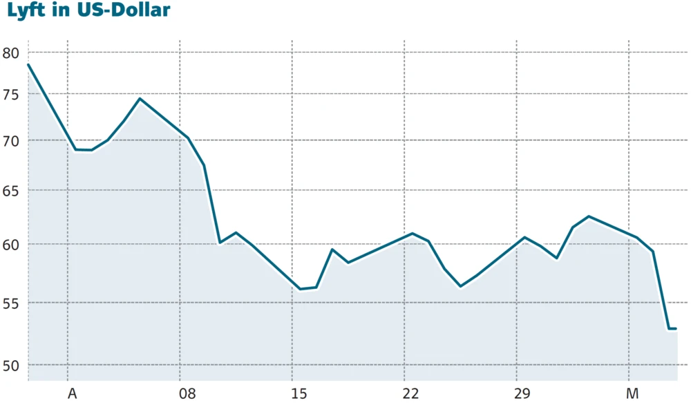 Für die Aktie des Fahrdienstleisters Lyft geht es im Eiltempo bergab. Den Ausgabepreis von 72 Dollar hat die Aktie in den vergangenen vier Wochen nicht mehr wiedergesehen. Wer damals gekauft hat, sitzt heute auf einem Verlust von 27 Prozent.