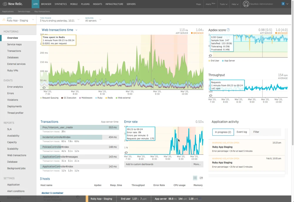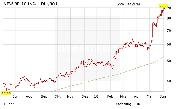 Ein Unternehmen, das von beiden Trends profitieren kann, ist New Relic. Die Softwarefirma zählt im Bereich Application Performance Management (APM) zu den führenden Anbietern und ist in einer digitalen Gesellschaft, in der viele Unternehmen auf Apps setzen, Gold wert. APM ermöglicht nicht nur die Performance einer App oder Homepage zu überprüfen, sondern auch die zugrunde liegende Hardware sowie die Kommunikation nach außen. Der Anwender sieht damit in Echtzeit (auch in der Cloud) den überwachten Prozess und an welcher Stelle sich Probleme ergeben.