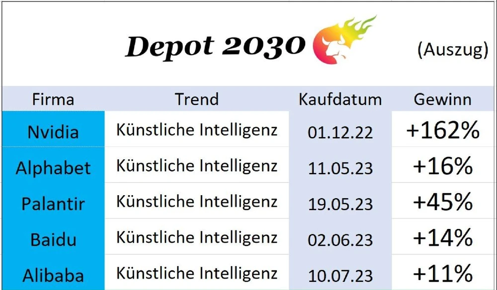 Es ist ein guter Zeitpunkt auf unterschätzte, noch untenliegende Aktien zu setzen. Hier können Sie sich für das TFA-Depot freischalten, das im AKTIONÄR HSR geführt wird. Gleichzeitig erhalten Sie dabei Zugang zum Depot 2030, das gerade mit dynamischen KI-Aktien gespickt ist.