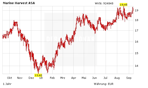 Die Experten rechnen damit, dass auch im kommenden Jahr eine weiter steigende Lachsnachfrage aus aller Welt auf ein nur leicht steigendes Angebot treffen wird. Bei Lachspreisen von knapp 60 Norwegischen Kronen stehen die Chancen gut, dass Marine Harvest 2019 einen neuen Rekordgewinn verbuchen wird. Im Zuge dessen dürfte das Unternehmen seine spendable Ausschüttungspolitik fortsetzen und die ohnehin schon üppige Dividende (Rendite derzeit 5,7 Prozent) weiter anheben.