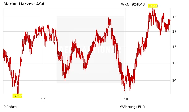 Darüber hinaus sind die Lachspreise zuletzt wieder spürbar gefallen. Diese zeigten sich zwar auch in der Vergangenheit oftmals sehr volatil und der jüngste Rückgang stellt auch noch keinen Grund zu erhöhter Sorge dar. Dennoch beschert der Preisrückgang der Marine-Harvest-Aktie natürlich alles andere als Rückenwind.