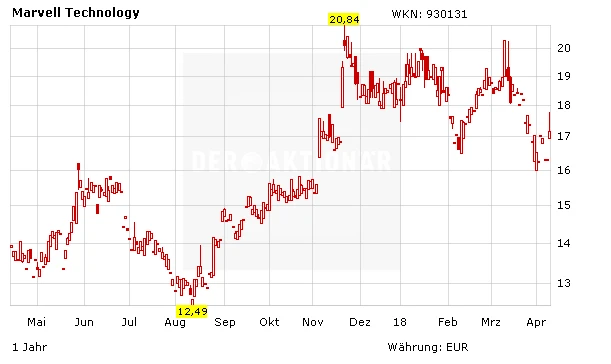Trotz der Ausrichtung auf zahlreiche Zukunftstrends kommt Marvell nicht vom Fleck. Seit November bewegt sich die Aktie in der Seitwärtsrange zwischen 20 und 24 Dollar. Der Kauf von Cavium für rund 6 Milliarden Dollar könnte der Aktie jedoch helfen, aus der Range auszubrechen. Denn Marvell wird durch die Übernahme neben Broadcom einer der Top-Player im schnellwachsenden Netzwerk-Segment für 25 bis 100 Gigabit pro Sekunde. Gleichzeitig passt sich der Kauf gut in das Konnektivitätsgeschäft ein und dürfte durch Synergieeffekte die ohnehin starken Margen noch weiter verbessern.