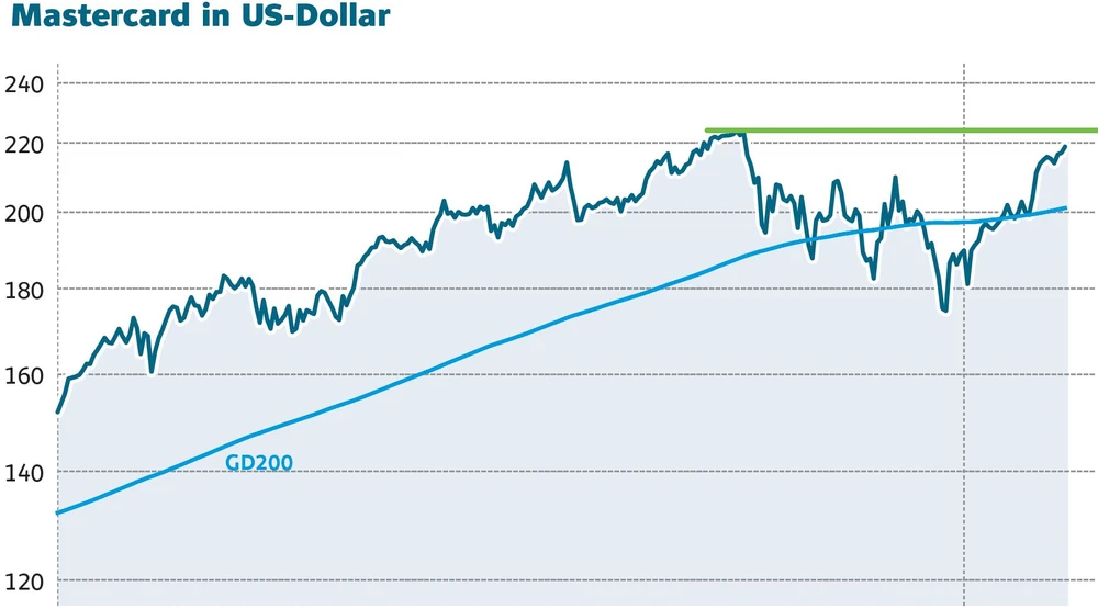Seit der Empfehlung des AKTIONÄR im April 2016 hat die Mastercard-Aktie 130 Prozent zugelegt. Die Aktie ist nicht mehr super günstig, doch die Aussichten rechtfertigen die Bewertung locker. Es ist denkbar, dass es einige Länder es dem schwedischen Beispiel nachmachen und Bargeld irgendwann komplett abschaffen. Charttechnisch sieht es top aus: Die Aktie steht vor einem neuen Rekordhoch. Gelingt das Break, wäre dies ein starkes Kaufsignal.