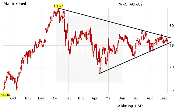 Die Mastercard-Aktie hat seit dem Börsengang zwar schon 1.850 Prozent zugelegt, und der Titel ist mit einem 2015er-KGV von 21 kein Schnäppchen mehr. Allerdings steckt der Markt für mobiles Bezahlen erst in den Kinderschuhen und verfügt weltweit über großes Potenzial. Nicht zu vergessen, dass Mastercard auch im klassischen Kredit- und EC-Kartengeschäft weiter wachsen wird, vor allem in den Schwellenländern, wo immer noch die meisten Menschen mit Bargeld bezahlen. DER AKTIONÄR bleibt bei seiner Kaufempfehlung. Der Stopp sollte bei 49 Euro gesetzt werden.