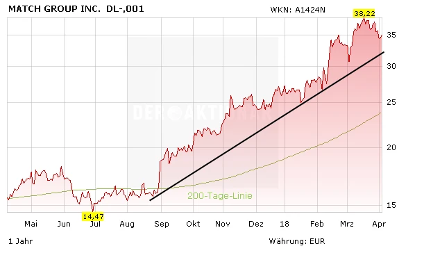 Die Match Group gilt mit Ihren Datingplattformen wie Tinder und LoveScout24 als absoluter Marktführer in diesem Segment. Der langfristige Aufwärtstrend ist in Takt. Nichts desto trotz bewegt sich die Aktie auf einem hohen Niveau – Kurskorrekturen können als Einstiegschance genutzt werden.