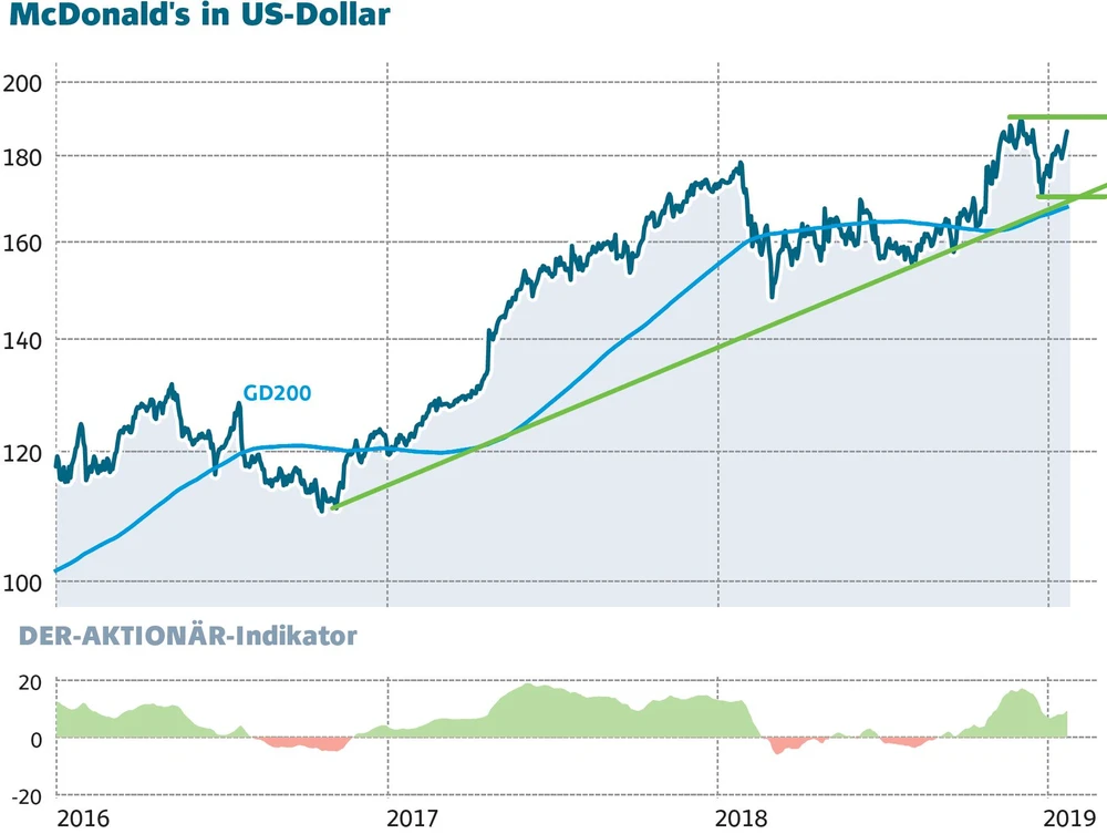 EU-Behörden haben McDonald's, der Mutter des schnellen Essens, das Markenrecht am Big Mac weggenommen. Ein irischer Anbieter darf nun seine Burger ebenfalls Big Mac nennen. Was sich wie ein schwerder Schlag gegen die Tradition des 1940 gegründeten US-Unternehmens anhört, ist dem Markt herzlich egal. Die Aktie dreht 2019 richtig auf.