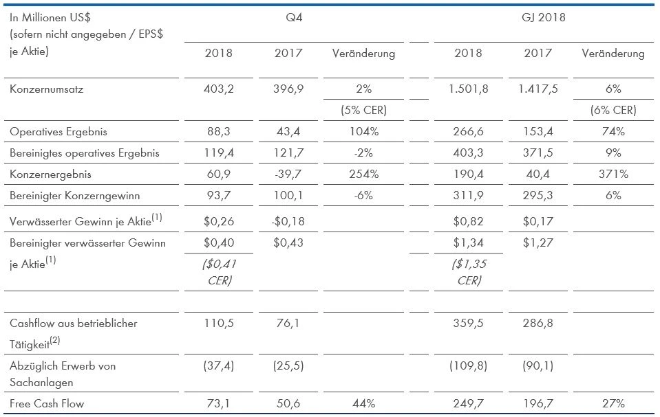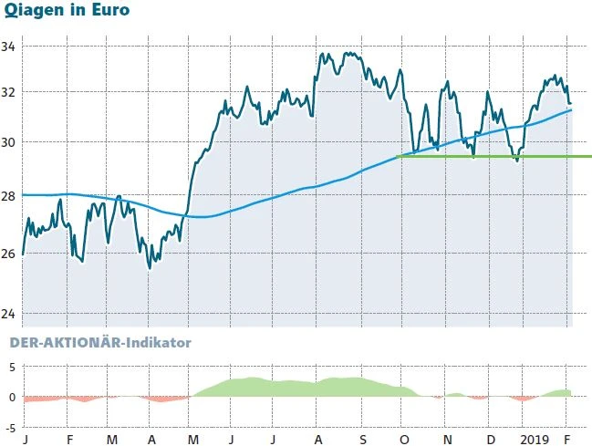 Die Aktie von Qiagen gibt am Dienstag 1,3 Prozent ab, nachdem das Unternehmen am Vorabend seine Zahlen für das vierte Quartal 2018 sowie das Gesamtjahr 2018 veröffentlicht hat. Der Umsatz kletterte im Schlussquartal auf 403 Millionen US-Dollar - ein Plus von zwei Prozent nominal beziehungsweise von fünf Prozent auf Basis konstanter Wechselkurse. Der bereinigte operative Gewinn ist um zwei Prozent auf 119,4 Millionen Dollar gefallen. Das bereinigte Konzernergebnis fiel um sechs Prozent auf 93,7 Millionen Dollar. Unter dem Strich blieben 60,9 Millionen Dollar nach einem Verlust von 39,7 Millionen Dollar im Vorjahreszeitraum. Damit lag man leicht unter den Erwartungen der Analysten, die Qiagen Umsätze in Höhe von 412 Millionen Dollar, ein bereinigtes operatives Ergebnis von 121,9 Millionen Dollar und ein bereinigtes Konzernergebnis von 94 Millionen Dollar zugetraut hatten.