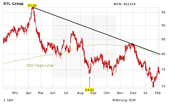 Lisa Hau vom Analysehaus Jefferies hat RTL mit "Hold" und einem Kursziel von 80 Euro in die Bewertung aufgenommen. Der Fernsehsender habe eine starke Marktstellung und erschließe allmählich auch Bereiche mit schneller wachsenden Umsätzen, so Analystin Hau in einer Studie. Die Trendwende bei der Tochter Fremantle sowie sich erholende Schlüsselmärkte wie Frankreich seien Kurstreiber. Die Expertin bevorzugt jedoch unter den deutschen Fernsehsendern die Aktie von ProSiebenSat.1.