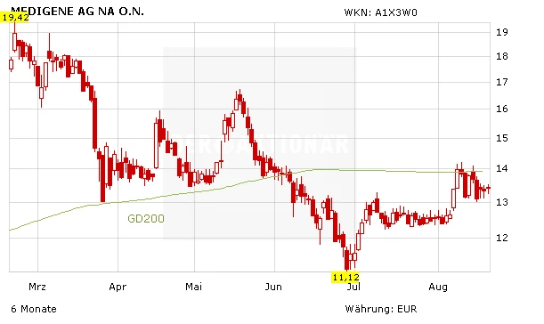 Auch DER AKTIONÄR bleibt positiv gestimmt. Man muss jedoch ganz klar wissen, dass die Aktie von Medigene im Vergleich zu den drei anderen TecDAX-Biotech-Kollegen Evotec, Morphosys und Qiagen ganz klar als hochspekulativ eingestuft werden muss. Gelingen jedoch die erhofften Forschungserfolge dürfte die Aktie mittel- bis langfristig deutlich höher notieren. Die Aktie bleibt ein interessantes Investment zur Depotbeimischung für risikobereite Investoren.