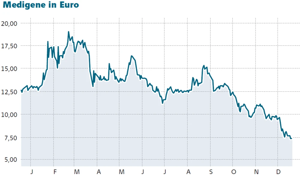 Belastend wirkte sich bei Medigene sicherlich der kürzlich vollzogene Rauswurf aus dem TecDAX aus. Zum anderen bremste der seit Oktober zu beobachtende "Risk-Off"-Modus an den Aktienbörsen. Diese Entwicklung drückte vorübergehend stark auf die Kurse von spekulativen Technologie- und Biotech-Werten.