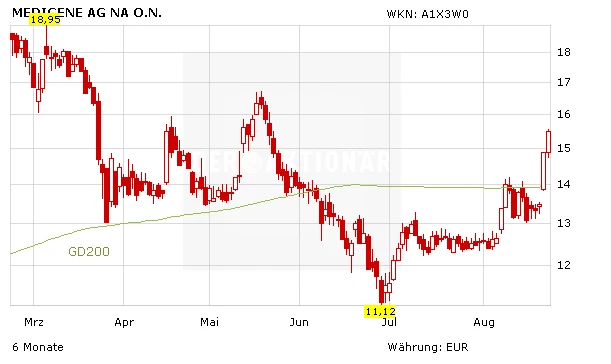 Die Baader Bank hat die Einstufung für Medigene angesichts einer neuen Partnerschaft auf „Buy" mit einem Kursziel von 22 Euro belassen. Analyst Bruno Bulic lobte in einer am Dienstag vorliegenden Studie die Kooperation mit Structured Immunity. Die Allianz ergänze gut die Entwicklungsfähigkeiten des Biotechnunternehmens auf dem Gebiet der neuartigen TCR-Krebsimmuntherapie. Bereits einige Tage zuvor hatte sich das Analysehaus EQUI.TS positive zu Medigene geäußert. Die Experten errechneten ein Kursziel für die Medigene-Aktie von 23,50 Euro.