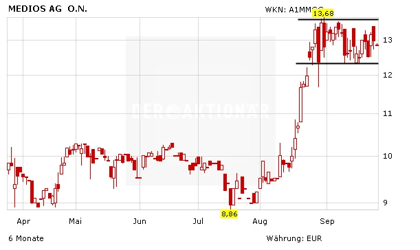 Nach der starken Rallye im August hat die Aktie von Medios zuletzt eine Verschnaufpause eingelegt. Die derzeitige Konsolidierung bietet noch nicht investieren Anlegern die Chance zum Einstieg. Medios hat sich in einer höchst aussichtsreichen Nische hervorragend positioniert und dürfte vom Trend der personalisierten Medizin überproportional profitieren können.
