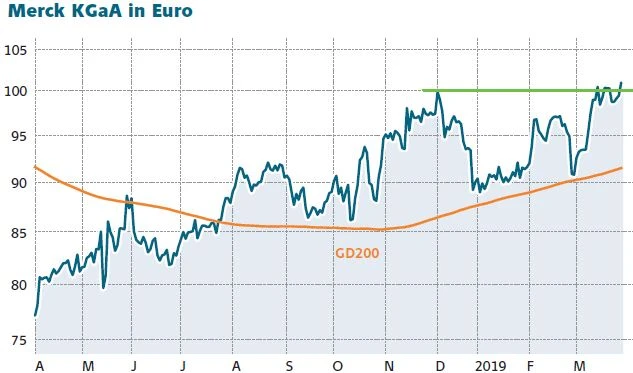 Die Aktie von Merck hat sich seit Anfang März enorm stark entwickelt. Am heutigen Donnerstag gelingt dem Wert sogar der Sprung auf ein neues 52-Wochen-Hoch und damit ein neues Kaufsignal. Die Aktie kann bis zum frühen Nachmittag 1,6 Prozent auf 101 Euro zulegen und ist damit hinter Fresenius Medical Care und Covestro der bislang drittstärkste Wert des Tages im DAX. Im Fokus bei Merck steht derzeit die geplante Übernahme des US-Halbleiterzulieferers Versum Materials. In dieser Woche haben die Darmstädter ein feindliches Übernahmeangebot vorgelegt. Mit 48 Dollar je Aktie in bar entspreche die Offerte einem Unternehmenswert von rund sechs Milliarden Dollar (rund 5,3 Millarden Euro), teilte Merck am Dienstag mit. Das Angebot laufe bis 7. Juni vorbehaltlich einer Verlängerung. Finanzierungszusagen von Banken für den Milliarden-Deal habe man bereits eingeholt.