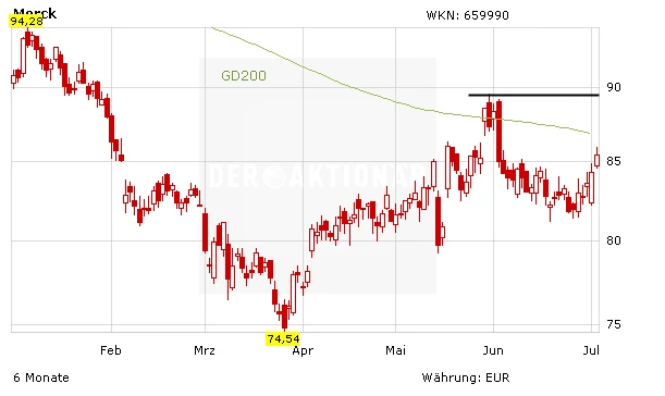 An der Börse werden die Nachrichten gut aufgenommen. Die Aktie von Merck gewinnt 1,7 Prozent auf 85,70 Euro. Ohnehin zeigte sich der Wert bereits im Wochenvergleich stark. Hier rangiert das Papier mit einem Plus von rund drei Prozent auf Platz 5 der besten DAX-Werte hinter Covestro, Beiersdorf, RWE und Linde. Aus charttechnischer Sicht wäre nun wichtig, dass die 200-Tage-Linie zurückerobert werden kann.