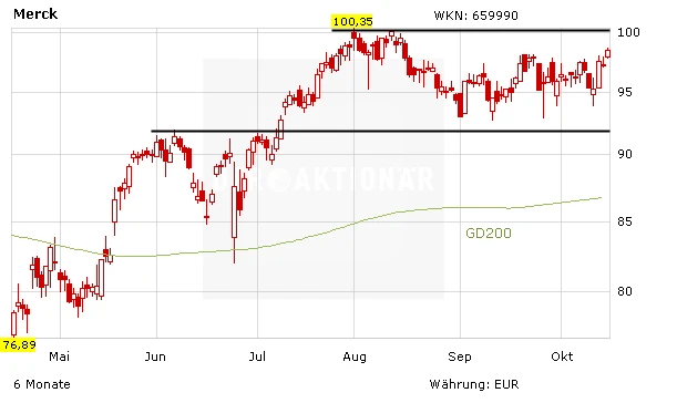 Derweil haben auch einige Analysten die Aktie von Merck neu bewertet. Die DZ Bank hat die Einstufung für Merck KGaA nach einer Investorenveranstaltung auf "Kaufen" mit einem fairen Wert von 112 Euro belassen. Der Pharma- und Spezialchemiekonzern habe sich gut präsentiert, schrieb Analyst Peter Spengler in einer Studie vom Montag. Das Healthcaregeschäft trete in eine entscheidende Phase ein, in der erste Medikamente aus der Pharma-Pipeline zur Marktreife kommen könnten. Zudem sei nicht auszuschließen, dass Merck im Rahmen der Zahlen zum dritten Quartal seine Geschäftsziele anhebe.
