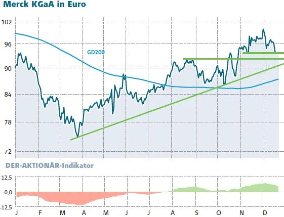 Aus charttechnischer Sicht ist die Aktie von Merck derzeit auf einen wichtigen horizontalen Unterstützungsbereich aufgelaufen. Diesen gilt es zu verteidigen. Im Bereich von 87 Euro wartet außerdem die 200-Tage-Linie als weiterer wichtiger Support. Ein neues Kaufsignal würde der Sprung über die Marke von 100 Euro bringen. Anleger bleiben bei dem Wert mit einem Stopp bei 78 Euro investiert.