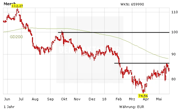 Mit neuen Medikamenten will Merck bis 2022 zwei Milliarden Euro Umsatz machen und damit Rückgänge bei alten Umsatzbringern kompensieren. Die Aktie von Merck konnte sich von ihrer kurzen Korrektur im Zuge der Veröffentlichung der Zahlen zum ersten Quartal rasch wieder erholen. Wichtig wäre aus charttechnischer Sicht nun der Sprung über die 200-Tage-Linie. Mittelfristig wäre die Rückeroberung der 100-Euro-Marke ein bedeutendes charttechnisches Signal.