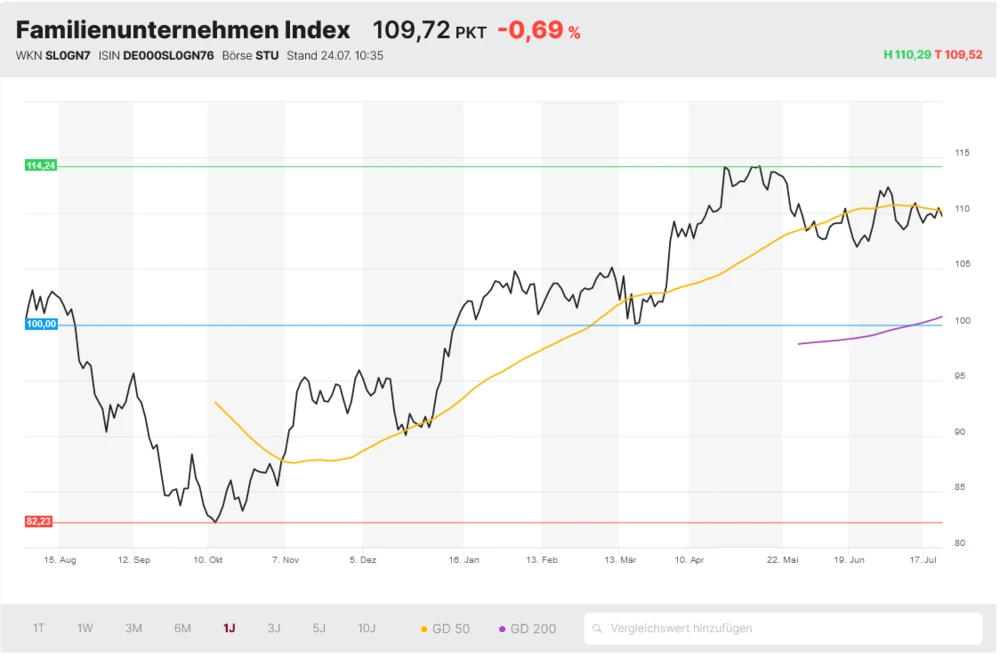 Merck ist Mitglied im DER AKTIONÄR Familienunternehmen Index und nimmt derzeit hinter dem Softwareunternehmen Bechtle die zweithöchste Indexgewichtung ein. Mit dem Indexzertifikat WKN DA0ABS können Anleger an der Entwicklung von 12 europäischen Familienunternehmen partizipieren. In der Vergangenheit konnten Familienunternehmen in den meisten Fällen eine Outperformance gegenüber dem dazugehörigen Sektor generieren.