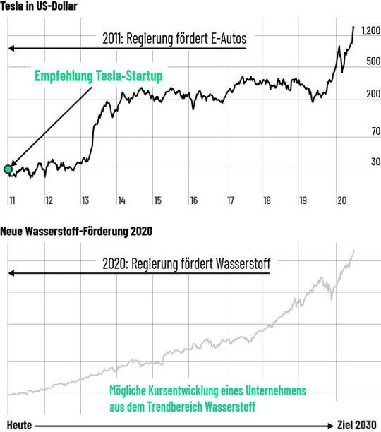 Die neuen Milliardenförderungen sind entscheidend. Wie beim Elektroauto 2011 oder bei Solar vor einem Jahrzehnt gibt es jetzt für die neuen Wasserstoff-Player Rückendeckung von Merkel und Co. Hot-Stocks aus diesem Bereich steigen 100 Prozent und mehr in wenigen Wochen. Das ist unser Top-Favorit.