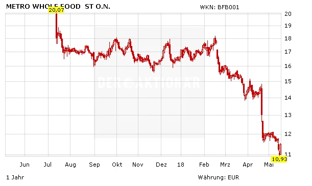 Die Investmentbank Oddo BHF ging sogar einen Schritt weiter und stufte die Aktie von „Neutral“ auf „Reduce“. Analyst Laurence Hofmann betonte kräftig, dass er den Optimismus der Metro-Führung bezüglich des rückläufigen Russland-Geschäfts nicht teile. Hofmann rechnet, im Gegensatz zum Vorstand, nicht mit einer Stabilisierung bis zum Ende des Geschäftsjahres 2017/18. Seiner Meinung nach dürften sich die Margen in Russland weiter verschlechtern. Seit der Gewinnwarnung habe sich die Glaubwürdigkeit des Managements eingetrübt. Der Analyst senkt das Kursziel von 12,50 Euro auf 10,00 Euro.