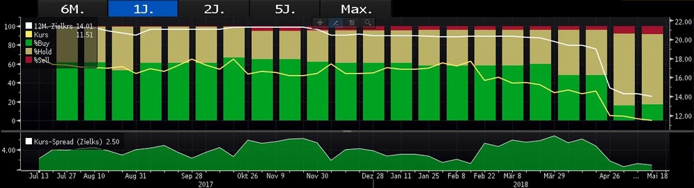 Analyst Borja Olcese von der US-Bank JPMorgan beließ die Einstufung auf „Neutral“ mit einem Kursziel von 15,50 Euro. Besorgniserregend sei vor allem die Verschlechterung des Russland-Geschäfts, welche auch Grund für seine gesenkten Schätzungen für den Jahresgewinn sind.