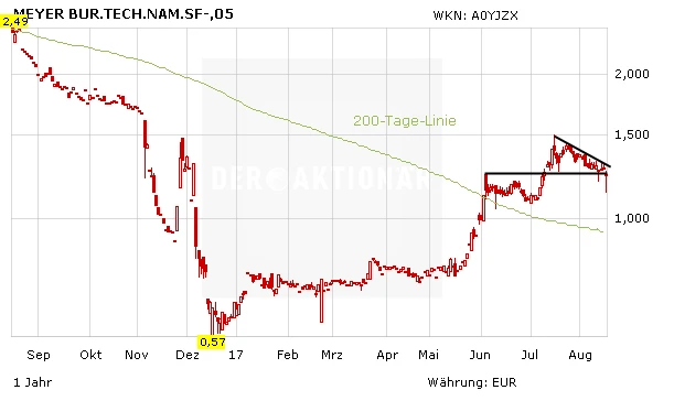 In den ersten Handelsminuten reagierten die Anleger verstimmt auf die Zahlen und schickten die Meyer-Burger-Aktie bis zu 13 Prozent in den Keller. Übertriebene Reaktion. Denn die Prognosen und der Auftragseingang sprechen für die weitere Belebung des Geschäftes. Meyer Burger muss im zweiten Halbjahr liefern. Investierte Anleger bleiben an Bord.