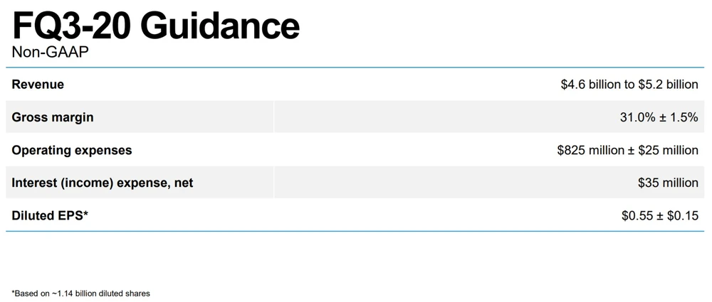 Für das dritte Quartal im Fiskaljahr 2020 rechnet Micron mit einem Umsatz in der Spanne von 4,6 bis 5,2 Milliarden Dollar (Analystenschätzung: 4,88 Milliarden Dollar) und einem Gewinn pro Aktie von 0,40 bis 0,70 Dollar (Schätzung: 0,52 Dollar). Die Bruttogewinnmarge soll 29,5 bis 32,5 Prozent betragen.