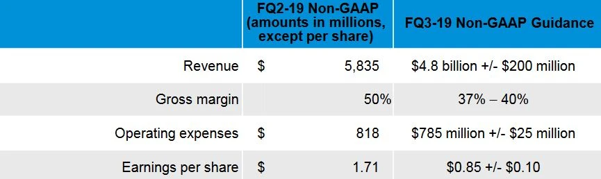 Im zweiten Quartal 2019 erzielte Micron einen Umsatz von 5,84 Milliarden Dollar und lag damit leicht über den Erwartungen der Analysten von 5,82 Milliarden Dollar. Der Gewinn je Aktie von 1,71 Dollar lag ebenfalls leicht über den Schätzungen. Der Umsatz schrumpfte damit gegenüber dem Vorjahresquartal um 21 Prozent, der Gewinn je Aktie schrumpfte knapp 40 Prozent.