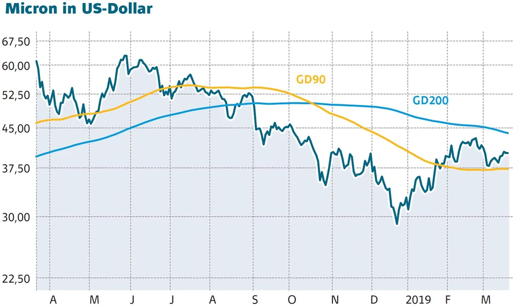 Nachbörslich stieg die Aktie dennoch um knapp fünf Prozent. Insbesondere die Aussagen des Micron-CEO Sanjay Mehrotra gaben den Anlegern im schwächelnden Speicher-Markt wieder Zuversicht. „Wir glauben, dass 5G, klappbare Smartphones und Innovationen im Bereich Augmented oder Virtual Reality für reichlich Wachstum in den nächsten Jahren sorgen werden“, sagte Mehrotra in der Analystenkonferenz.