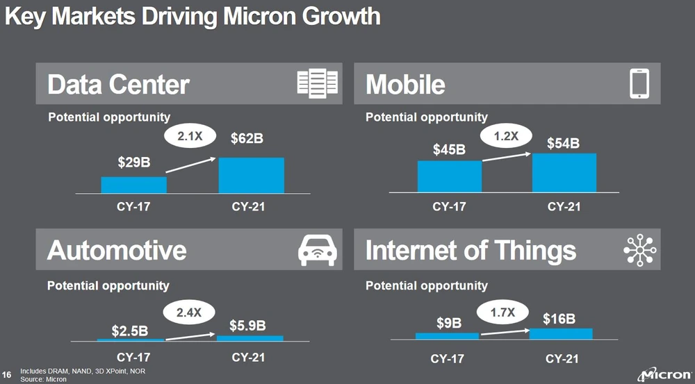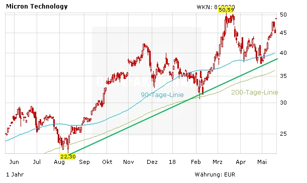 Die Analysten- und Investoren-Konferenz konnte auf ganzer Linie überzeugen. Das Marktpotenzial in den Bereichen Data Center, Mobile, Automotive und IoT ist rießig. Insbesondere der Umsatz auf dem wichtigen Data-Center-Markt, wo Flash- und DRAM-Chips in Massen eingesetzt werden, soll sich in wenigen Jahren verdoppeln. Bei derartigen Aussichten heißt es für Anleger: Gewinne laufen lassen.