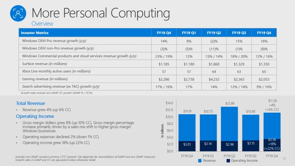 Während Sony weiterhin den Markt mit der PS4 dominiert, schrumpfte zuletzt das Gaming Segment bei Microsoft. Trotz eines Rekordumsatzes von 33,7 Milliarden Dollar verlor der Bereich „Xbox Software and Services“ drei Prozent – der Bereich „Xbox Hardware“ büßte sogar 48 Prozent ein. Allerdings scheinen viele, die noch keine Xbox One besitzen, auf die neue Konsole Xbox Scarlett zu warten, die Ende 2020 erscheinen soll.