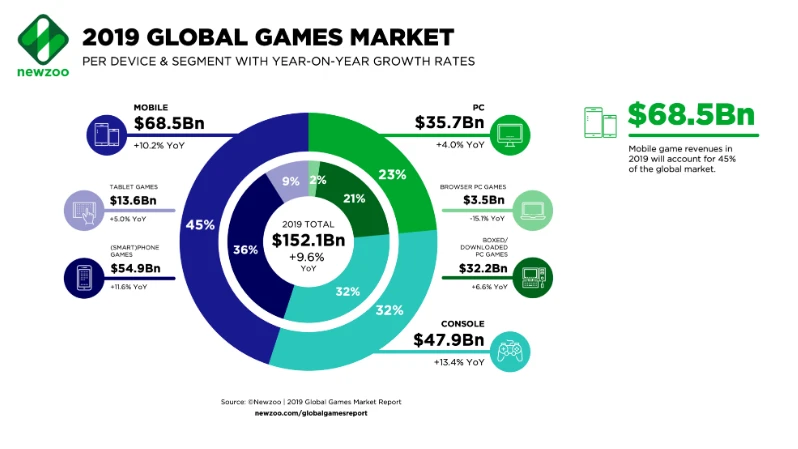 Das Gaming Segment bleibt trotz aktuellem Kuschelkurs der beiden Rivalen ein hochumkämpfter Mark. Das Marktpotenzial für 2019 wird dabei auf rund 152 Milliarden Dollar geschätzt. Allein das Konsolengeschäft soll dabei 2019 rund 32 Prozent ausmachen.