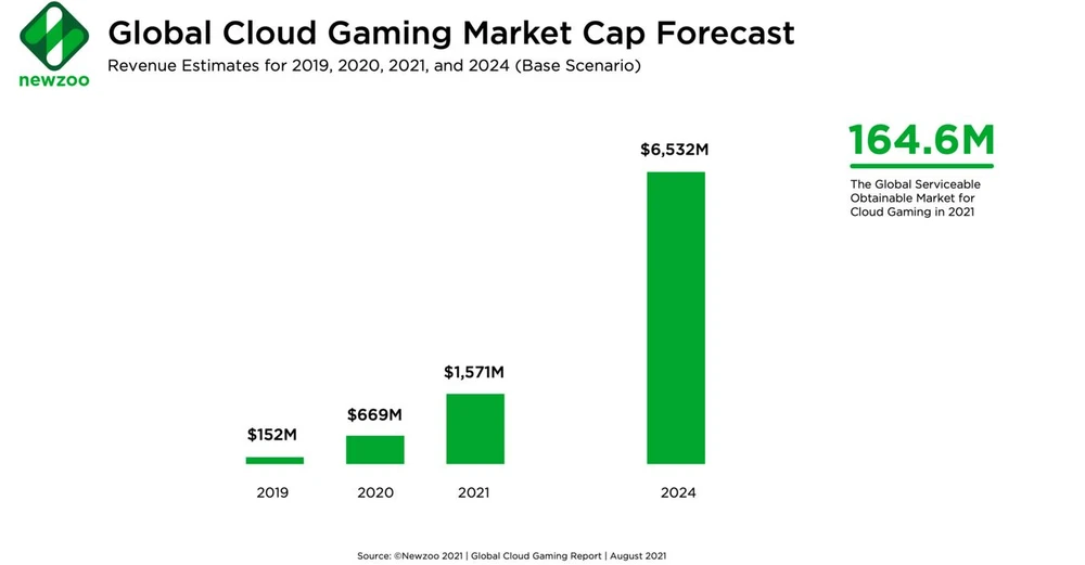 Cloud-Gaming ist noch eine sehr junge Vertriebsform von Videospielen, die laut den Marktforschern von Newzoo im Jahr 2019 erst 152 Millionen Dollar erlöst hat. Glaubt man den Experten, ist das Potenzial jedoch riesig. Im Jahr 2024 sollen bereits 6,53 Milliarden Dollar mit gestreamten Videospielen umgesetzt werden und insgesamt 61 Millionen Spieler begeistern.