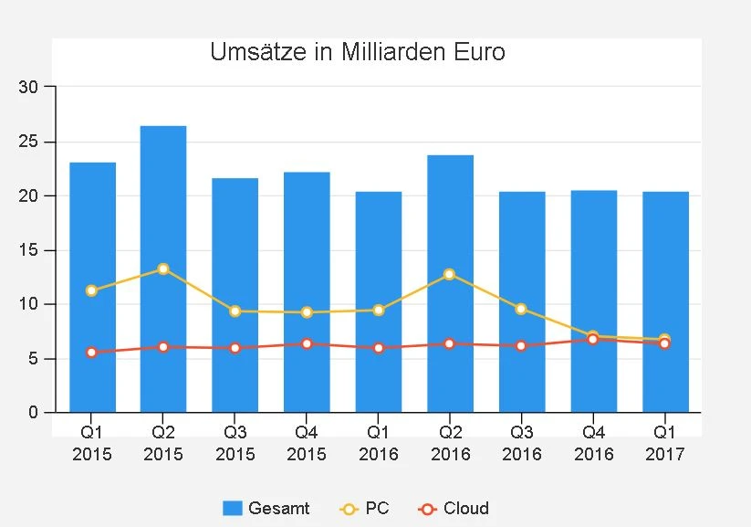 Bei den Office-Büroprogrammen, die inzwischen auch verstärkt als Abo angeboten werden, verlor man im Vergleich zum Vorjahr fünf Prozent. Schwierig bleibt auch die PC-Sparte, hier sanken die Erlöse um zwei Prozent auf 9,3 Milliarden Dollar.
