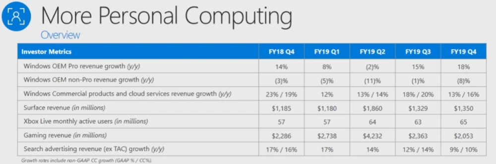 Mit der breit gefächerten Produktpalette demonstriert Microsoft den unbedingten Willen, die Windows-Plattform in der mobilen und Cloud-Welt fest zu verankern und den Markt nicht Apples iPads, dem MacBook Air oder den MacBooks zu überlassen. Im vierten Quartal des abgelaufenen Geschäftsjahres stieg der Umsatz mit Surface-Geräten um 14 Prozent. Genauere Zahlen gibt Microsoft nicht Preis, die Umsätze sind im Geschäftsbereich „More Personal Computing“ versteckt.