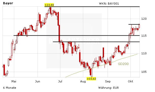 Während die Aktie von BASF nach Bekanntgabe des Deals 0,8 Prozent ins Minus gerutscht sind, reagiert die Aktie von Bayer mit einem Kursplus von 1,3 Prozent auf 118,25 Euro. Der nächste große Widerstand für die Bayer-Aktie ist das Jahreshoch bei 123,83 Euro. Die Aktie von BASF war zuletzt im Zuge des starken Anstiegs in den vergangenen Wochen ohnehin etwas heiß gelaufen. Hier könnte sich die Korrektur nun noch etwas fortsetzen. Anleger sollten diese Phase zum Einstieg bei BASF nutzen. Bei der Bayer-Aktie bleibt DER AKTIONÄR weiterhin skeptisch. Spannend wird es hier am 26. Oktober, wenn der Zwischenbericht zum dritten Quartal veröffentlicht wird.