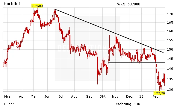 Die Finanzierung des Abertis-Deals wäre für Hochtief eine Herausforderung. Der spanische Autobahnbetreiber ist zwar eine lukrative Geldmaschine mit einem EBITDA von 3,8 Milliarden Euro und einer Marge von 66 Prozent. Dennoch dürfte der Bieterkampf vorerst verhindern, dass die Hochtief-Aktie wieder in Richtung der alten Hochs klettert. Anleger warten deshalb ab.