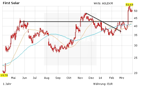Kurzfristig hat das First-Solar-Papier viel Schwung aufgenommen. Die Aktie ist aufgrund des charttechnischen Ausbruchs für Trader interessant. Als konservatives Investment eignet sich Papier jedoch nicht. Zumal mit der Zunahme des eigenen Projektgeschäfts die Transparenz des Business-Models und die Planbarkeit der Gewinne abnimmt. Auch scheint das große internationale Comeback der Dünnschicht-Technologie fraglich.