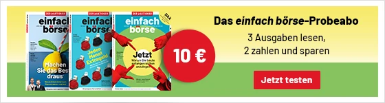 Das Magazin einfach börse liefert Ihnen monatlich noch mehr Hintergrundwissen und aktuelle Anlagetipps, wie Sie das Beste aus Ihrem Geld rausholen können. Immer unterhaltsam und kompakt aufbereitet. Als E-Paper oder in Papierform.