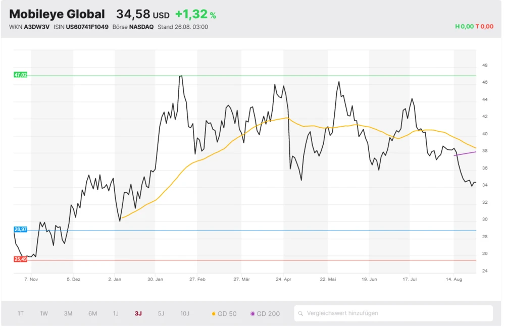 Die Nachfrage nach fortschrittlichen Fahrerassistenzsystemen und selbst-fahrenden Fahrzeugen dürften langfristig an Bedeutung gewinnen. Mobileye entwickelt hierfür Kameras, Computerchips und Software. Insbesondere die Märkte in China und in den USA versprechen großes Potenzial. Hier macht Mobileye bereits mehr als die Hälfte aller Umsätze. Die Aktie ist langfristig für spekulative Anleger durchaus einen Blick wert. Laut Investing.com empfehlen 21 Analysten von 24 die Aktie zum Kauf, dabei beträgt das durchschnittliche Kursziel etwa 48 US-Dollar, das sind gegenwärtig rund 40 Prozent Kurspotenzial.