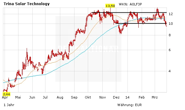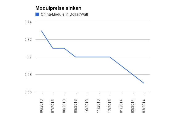 Die Korrektur der stark gestiegenen China-Solaraktien geht weiter. Nachdem es im Wachstumsmarkt Japan zu einer kleinen Anpassung der Fördersätze gekommen war, rücken nun auch die Modulpreise in den Mittelpunkt. Noch 2013 herrschte diesbezüglich eitel Sonnenschein. Nach einer jahrelangen Talfahrt der Preise für Solarmodule "Made in China" hatte im Vorjahr eine Stabilisierung eingesetzt. Bis Sommer 2013 erzielten die Modulhersteller sogar wöchentlich einen Tick mehr für ihre Produkte. Bis Ende des Jahres hielten sich die Preise dann auf einem hohem Niveau. Wie die zum großen Teil starken 2013er-Zahlen von Trina und Co zeigten, stiegen parallel dazu die Margen der Hersteller.