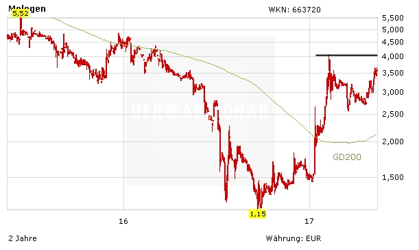 Lange Zeit ging es bei der Aktie von Mologen nur abwärts. Seit Dr. Mariola Söhngen vor knapp zwei Jahren das Ruder bei dem Unternehmen übernommen geht, gab es jedoch einen klaren Richtungswechsel. Mologen ist bestens ausgerichtet und könnte in Zukunft für weiteren positiven Newsflow sorgen. Noch in diesem Jahr werden beispielsweise wichtige Studienresultate zur Phase-1/2a-TEACH-Studie mit Lefitolimod erwartet. Anleger sollten bei dem Wert allerdings etwas Geduld und Risikofreude mitbringen. Dies könnte sich dann in Zukunft mit erstklassigen Kursgewinnen auszahlen.