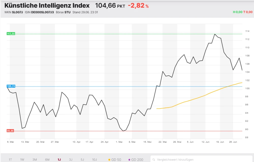 Schrödinger ist Mitglied im DER AKTIONÄR Künstliche Intelligenz Index und hat dort aktuell die höchste Indexgewichtung vor Nvdia, The Trade Desk und Microsoft. Mit dem Indexzertifikat WKN DA0ABW können Anleger nahezu eins zu eins an der Entwicklung von 15 KI-Profiteuren teilhaben.