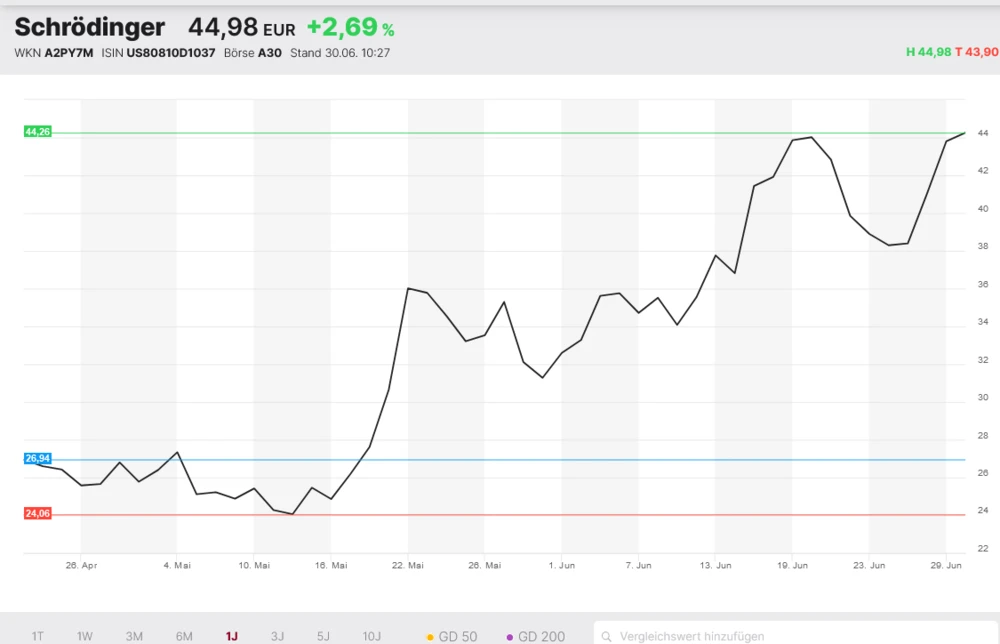 Bei dem Unternehmen handelt es sich um das amerikanische Unternehmen Schrödinger. Die Amerikaner sind ein Anbieter von Softwarelösungen für die Arzneimittelforschung auf Basis von künstlicher Intelligenz.